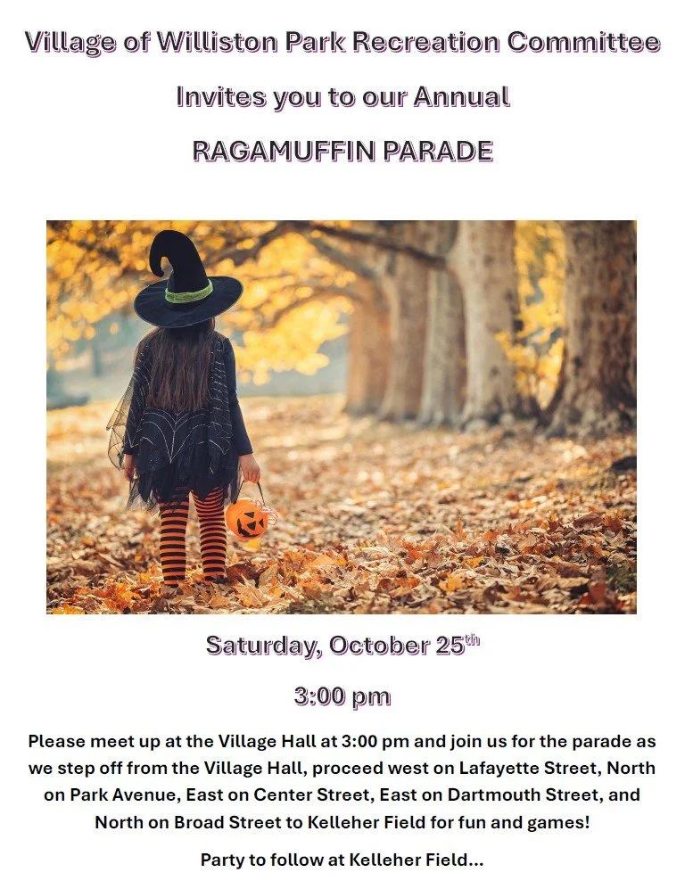 The Village of Williston Park is once again gearing up for one of its favorite fall traditions — the Annual Halloween Parade! 🎃